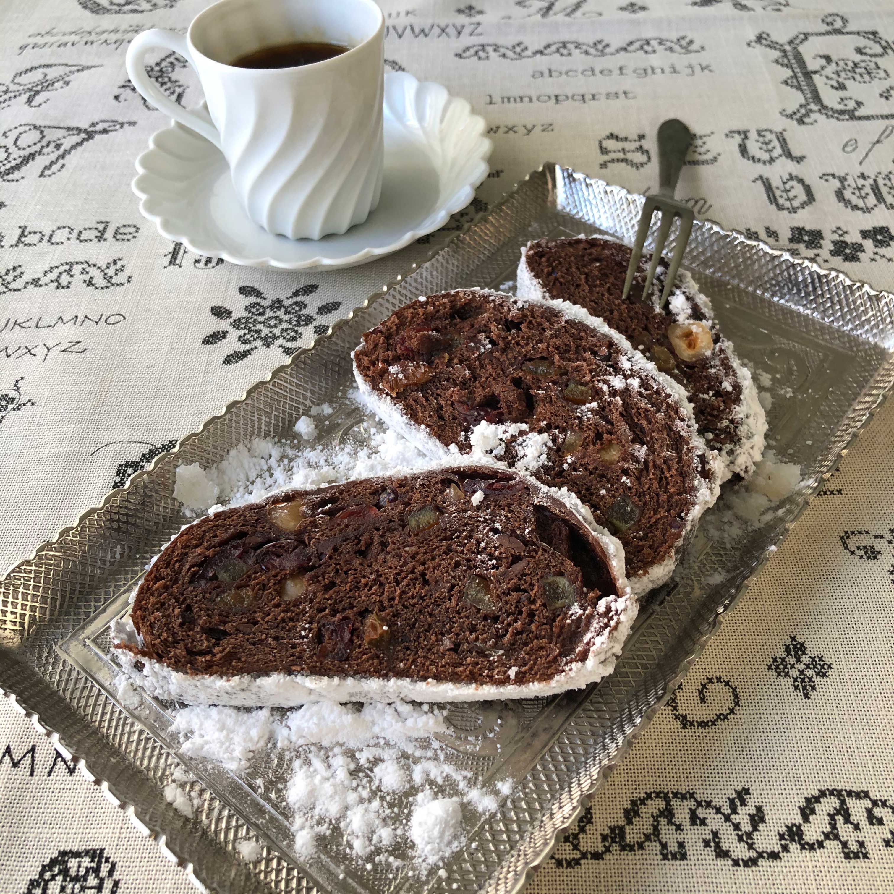 濃厚なチョコレートと、ドライフルーツがとても美味しいシュトレンです!