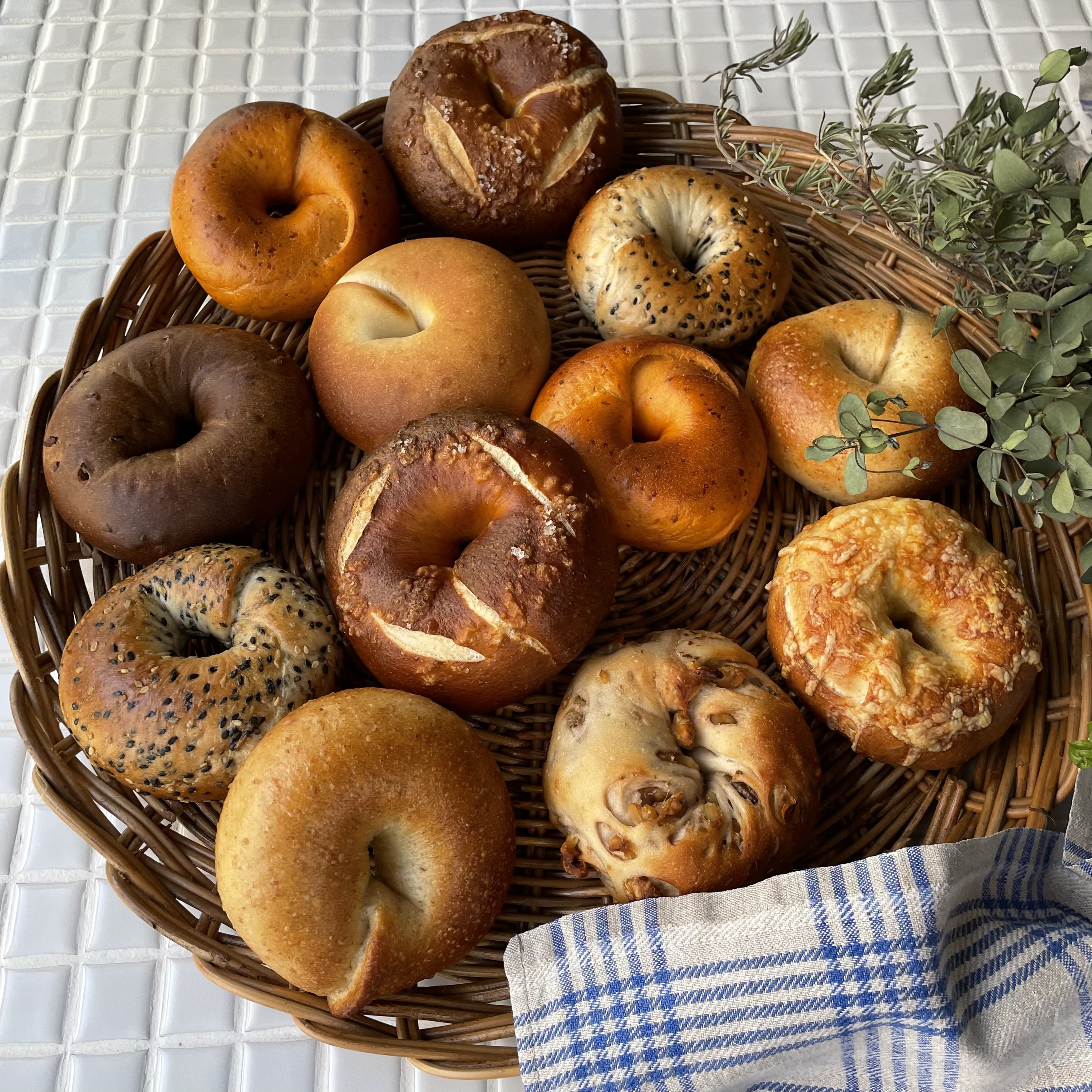 お選び頂いたベーグルは、1種類につき2個ずつ、1箱に12個のベーグルを詰め合わせます。